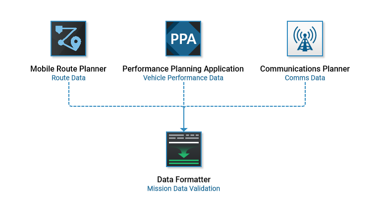 A mission planner’s workflow can consist of multiple planning applications all with their own expertise and purpose. Data Formatter ensures when all critical data is gathered forming the Mission that it is structured and formatted in accordance with the aircraft’s acceptance criteria.